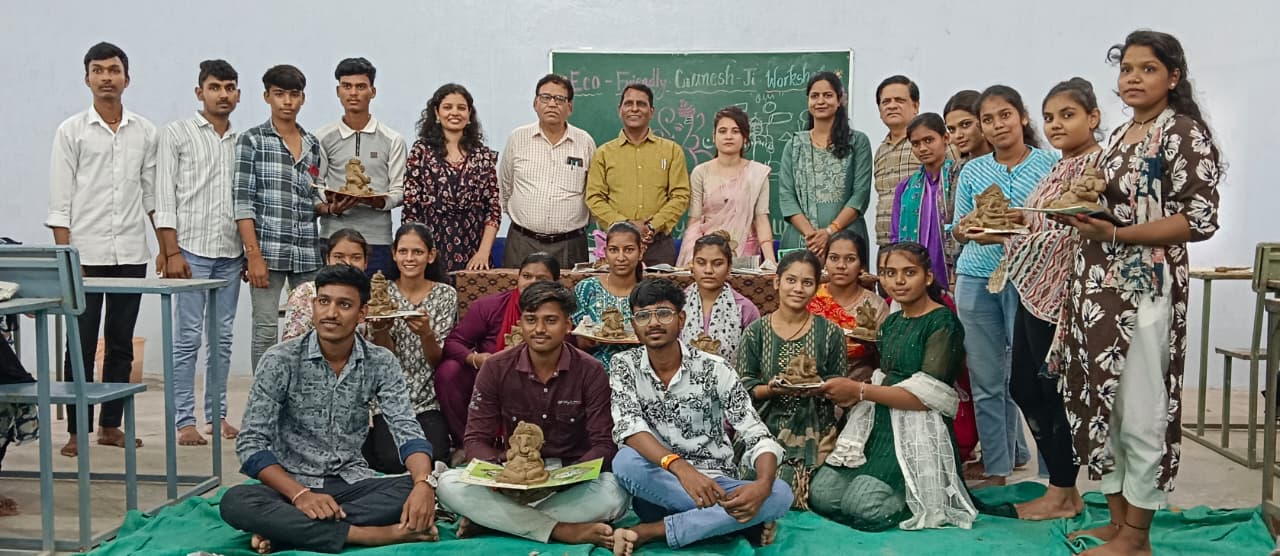 कार्यशाला में लगभग 65 विद्यार्थियों ने सहभागिता की एवं विद्यार्थियों तथा प्राध्यापकों डॉ प्रेरणा ठाकरे, सुश्री मयंका पलाश्या, सुश्री शिवानी जोशी एवं सुश्री नेहा शर्मा ने गणेशजी की मूर्ति बनाई। महाविद्यालय के प्राचार्य डॉ बलराम सोनी ने विद्यार्थियों का उत्साहवर्धन किया। सभी को अपने घर में मिट्टी से बने गणेश जी की मूर्ति स्थापित करने हेतु प्रेरित किया। कार्यक्रम का संचालन डॉ शिल्पा राठौर ने किया। उपरोक्त जानकारी कैरियर मार्गदर्शन प्रकोष्ठ प्रभारी डॉ.आसावरी खैरनार ने दी।