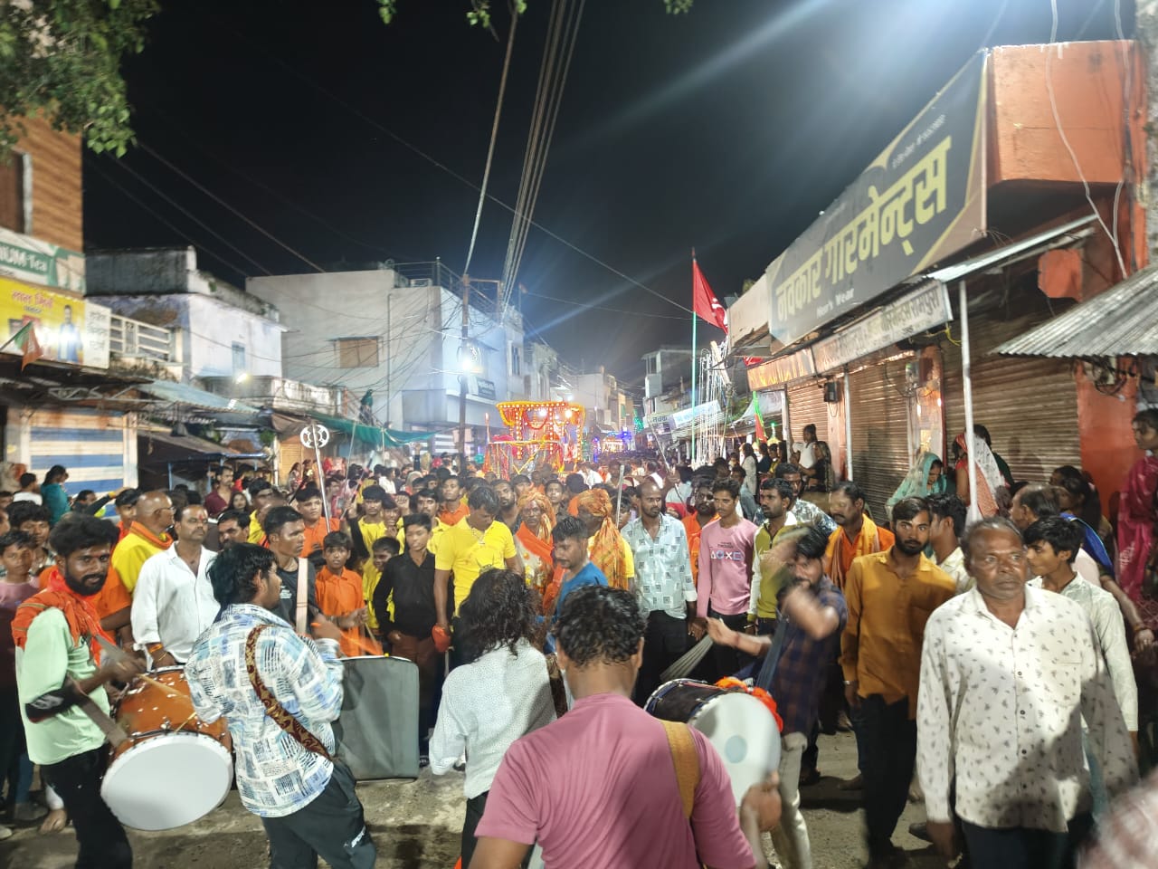 बाद गाजे बाजे व ढ़ोल अखाड़ो के साथ चल समारोह प्रारंभ हुआ जो नगर के मुख्य मार्गो से होता हुआ दुर्गासागर तालाब पहुंचा जहां रथ में विराजमान सभी भगवान को झूलाकर आरती की गई। चल समारोह में नगर के प्रसिद्ध अखाड़ो के नवयुवक बालक बालिकाओं द्वारा हैरतअंगेज करतब दिखाकर चल समारोह की शोभा बढ़ाई।