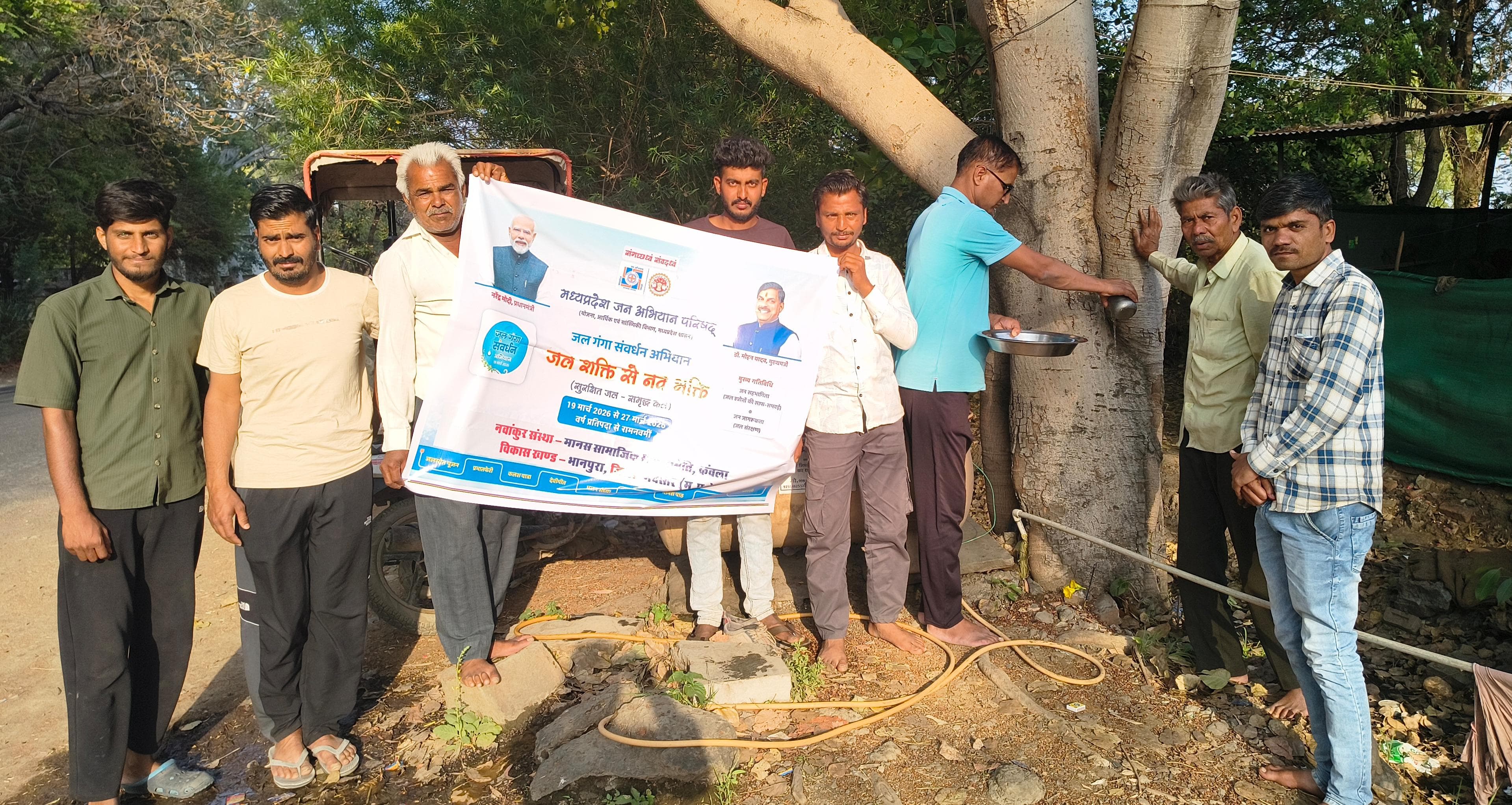 भानपुरा। मध्य प्रदेश जन अभियान परिषद् मंदसौर के जिला समन्वयक तृप्ति बैरागी के निर्देशन में जल गंगा संवर्धन अभियान विकासखंड भानपुरा के सेक्टर क्रमांक 03 में नवांकुर संस्था मानस सामाजिक सेवा समिति कंवला द्वारा ग्राम धनकपुरा व अरनियाचारण में जल शक्ति से नव भक्ति कार्यक्रम का सफल आयोजन किया गया। कार्यक्रम के अंतर्गत ग्राम अरनिया चारण में जल मंदिर (प्याऊ) की स्थापना की गई जिससे ग्रामवासियों को जल सेवा ही मानव सेवा के माध्यम से शीतल जल प्राप्त हो सकेगा एवं ग्राम धनकपुरा में पीपल वृक्ष का पूजन किया गया।